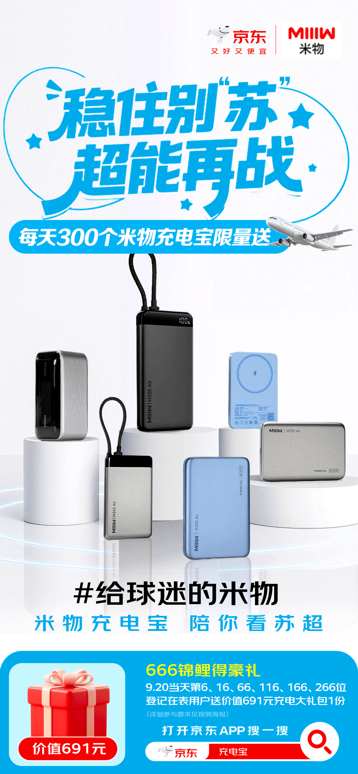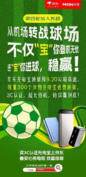 球迷凭一周内从外地抵达南通的车票或机票,以及无3C认证的充电宝,经人、证、票信息核验一致后,即可参与免费换新;京东老用户则可凭购买记录及行程凭证直接参与。除免费换新外,活动当日第6、16、66、116、166位登记用户还可额外获得价值691元的米物大礼包。